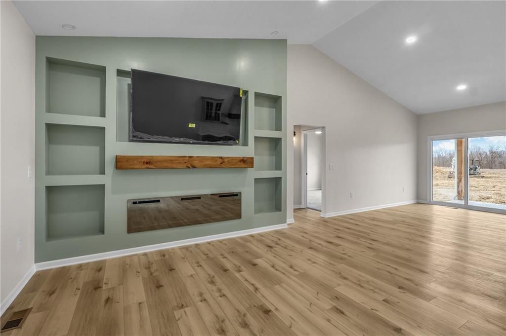 Stunning new-construction ranch home offering 3 bedrooms, 2.5 bathrooms, and a full unfinished basement! This home was built to impress! Step inside and immediately notice the vaulted ceilings, open-concept layout, and beautiful fireplace with built-ins that anchors the main living space. This spacious kitchen is standout, with tons of cabinetry that features plywood construction and soft-close doors and drawers. There is a large pantry within the kitchen perimeters that offers built in shelving and storage to maximize the space. Enjoy outdoor living on covered back patio or sit on the expansive, full length front porch that adds incredible curb appeal. Bedrooms are spacious with large closets throughout. The primary suite is truly exceptional, boasting a luxurious tiled master bath that features a soaker tub, walk-in shower, and double vanity. Off the bath is a large walk-in closet with built ins and tons of storage room. Just inside from the garage, youll find a well-designed drop zone with custom built-ins for effortless organization. The full basement is ready for your finishing touches and is already equipped with two egress windows, allowing for an easy, future 2-bedroom addition. Situated on a peaceful gravel road, this property offers privacy, space, and a beautiful setting. This is an amazing opportunity to own a gorgeous, new construction on acreage. Come and check this one out today!