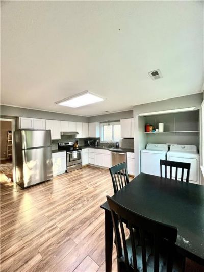 Step into this charming, updated, beautifully refreshed home that blends modern comfort with unbeatable convenience. The covered front porch and the blue siding create great curb appeal. This property features a fully wooden privacy-fenced backyard, perfect for pets, gatherings, or quiet evenings outdoors. A covered front porch welcomes you inside, where youll find 10-foot ceilings in the large living room and in the very large primary room (that holds two queen bed and furniture with room to spare) and all-new neutral paint that creates a bright, cohesive feel throughout. The completely remodeled bathroom stands out with its double sink stone-topped vanity, new tub and shower, updated fixtures, and a clean, contemporary design. It is rare to find a bathroom like this in this sized home. The newer kitchen offers stylish finishes and functional workspace, making everyday cooking a pleasure. Both bedrooms are enhanced with brand-new modern ceiling fans, adding both comfort and style. Major systems have been updated, including a brand-new total sewage system and an HVAC unit that is only two years old, giving you peace of mind for years to come. A convenient doggie door leads from the home to the back patio, making the fenced yard easily accessible to pets. Home is situated directly across the street from Columbia College and just five minutes from Mizzou, offering quick access to campus life, downtown amenities, and Columbias vibrant community. More pictures coming soon. Please call agent for showing.